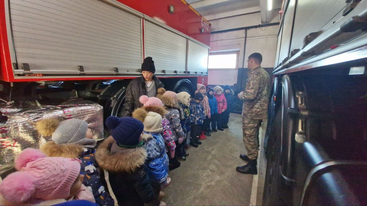 Экскурсия барысында өрт сөндіру бөлімінің қызметкерлері балаларға өрт қауіпсіздігі ережелерін сақтаудың маңыздылығы туралы айтып берді, өрт сөндіру техникасын, арнайы құрал-жабдықтарды және өрт сөндірушілердің жауынгерлік киімдерін көрсетті. Балалар өрт сөндіру көлігін қызығушылықпен қарап, отты сөндіру үшін судың қалай берілетінін және құтқарушылардың өз жұмыстарында қандай құралдарды қолданатынын білді.